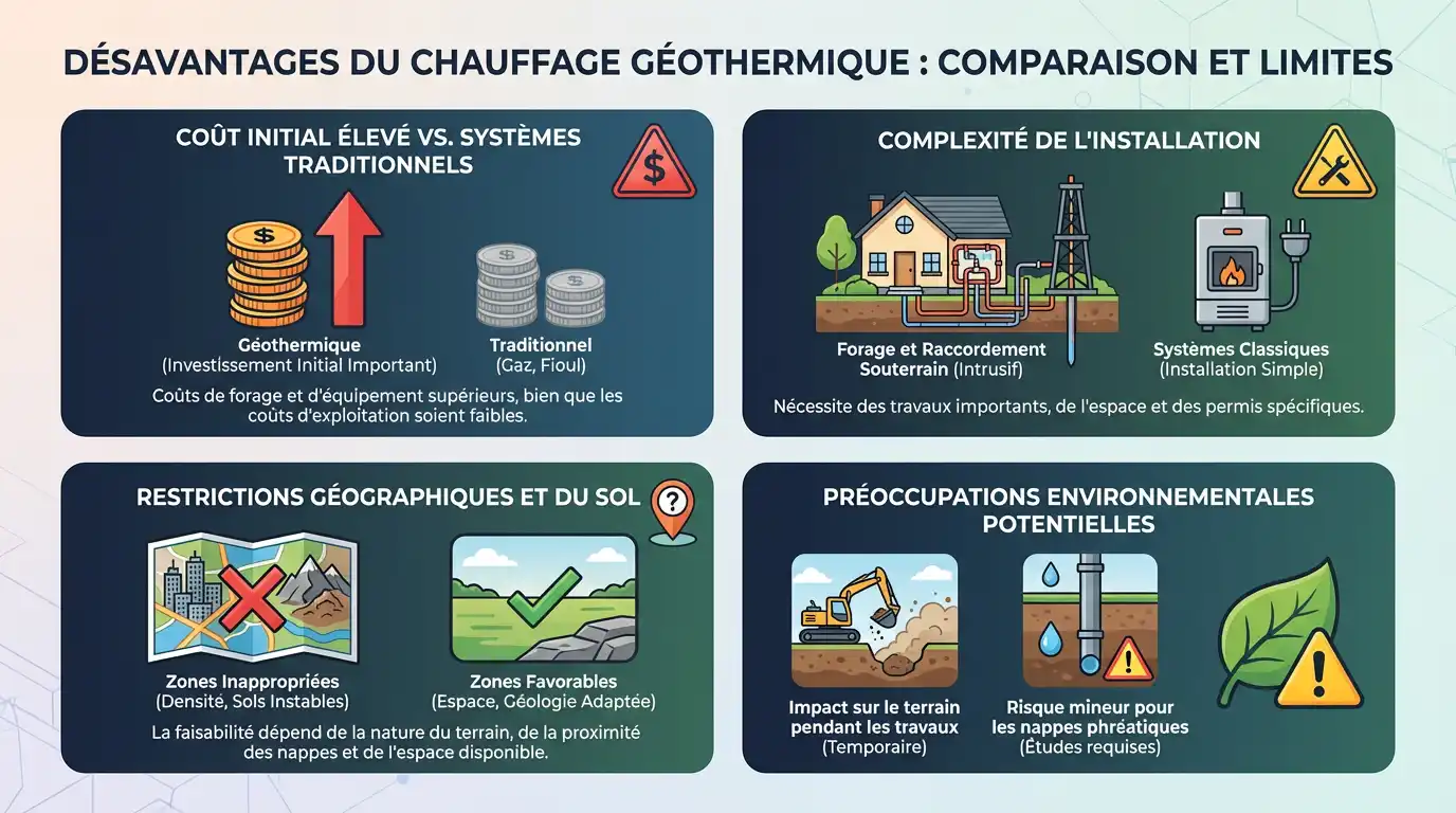 principaux inconvénients du chauffage géothermie