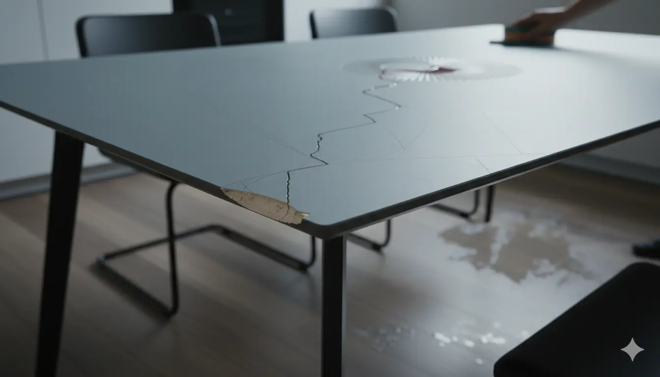 - 🔨 Irréparable en cas de fissure : contrairement au bois qui se ponce ou au marbre qui se restaure, aucune réparation n’existe pour un plateau céramique fissuré